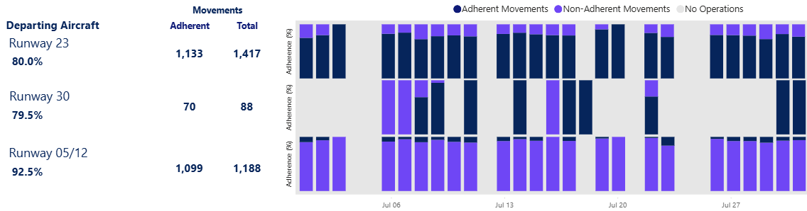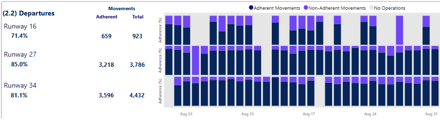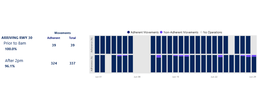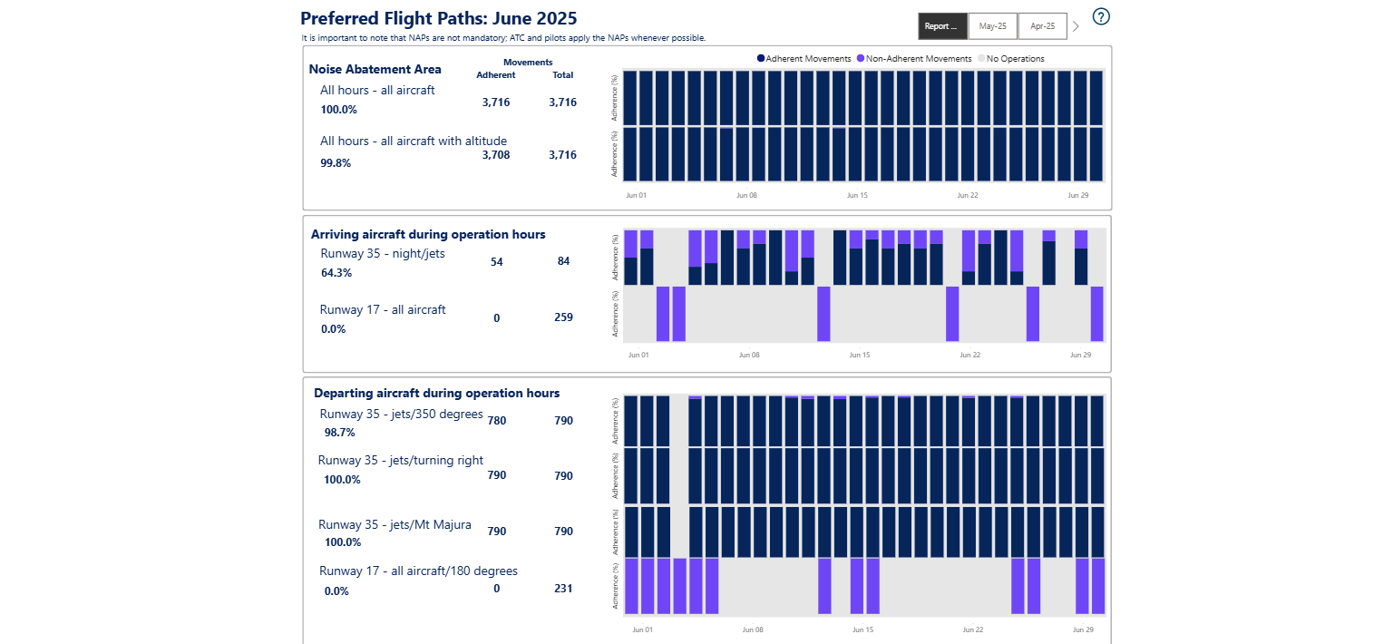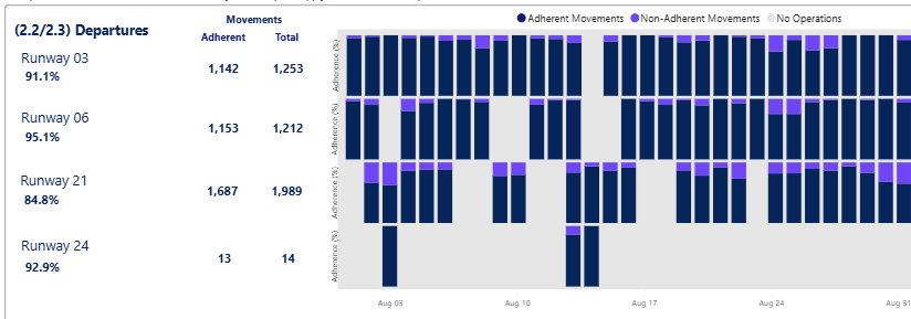 Priority 2.1 and 2.2 only report on movements that are under Priority 2 in the NAP (i.e. departing Runway 24 and landing Runway 06). The arrivals to Runway 24 and departures off Runway 06 when these Priority 2 movements occur, are reported under “Other Operations”. “Other Operations” also refer to modes used when preferred modes are not available, due to things like runway works, adverse weather and emergency situations.